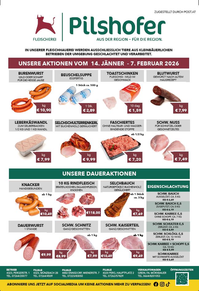 Auch Helfer in allen Bereichen der Fleischwarenerzeugung bieten wir einen sicheren Arbeitsplatz. Wir freuen uns auf ihre Bewerbung in unserem Traditionsbetrieb in Münzbach. Kontaktieren Sie uns per Mail oder gleich telefonisch und lernen wir uns kennen.